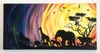 A Leap of FaithThough an obvious parallel to The Lion King in the title, this piece delves deeper by questioning the finality of life. While some may view these animals proceeding to an ominous cliff and impending doom, others might imagine them moving towards a tranquil spot among the stars in the sky.The lion leads the way, standing erect ready to face whatever may be next. So many people fear death and the lack of control. Perhaps true liberation lies in acceptance and letting go. Much like with a cliffhanger ending to a novel, the decision between fear and acceptance is ultimately a personal choice. 48x24 oil on canvas.